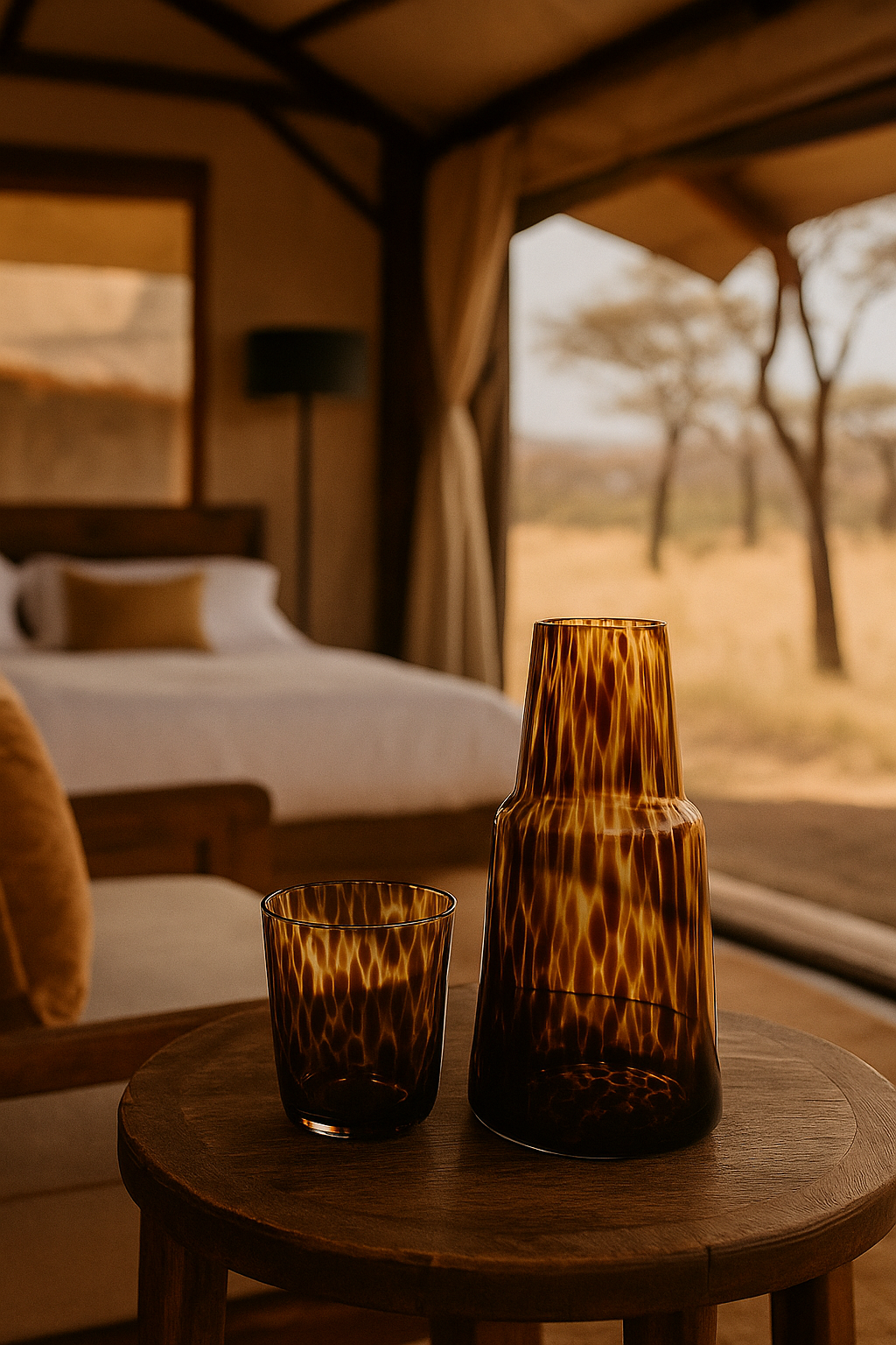 This rich tortoise shell carafe is superb addition to any table or bedside table.